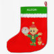 Elfo bonitinho na estocagem de Natal vermelha. O Natal é uma época maravilhosa com Papai Noel, elfos, anjos e fadas. Feliz Natal!
