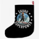 Imagem engraçada de esportes de esqui no inverno, mostrando gráficos de montanha e uma mulher no esqui, e o ditado: esquiar é minha superpotência e pequenas estrelas. Este é o presente perfeito para todos, que adoram esquiar, montanhas e esportes de inverno.