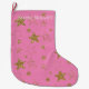 Meia De Natal Grande Estrelas Douradas de brilho rosa
