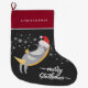 Esta meia personalizada bonito do Natal do feriado caracteriza uma preguiça que pendura para fora em uma lua com uma estrela à disposição e que veste um boné do papai noel com a frase "Slothmas alegre" no roteiro e no nome modernos que é facilmente editável na parte superior da meia.