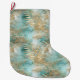 Meia De Natal Grande Folhas Tropicais Douradas de Aqua White