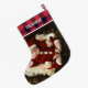 Meia De Natal Grande Foto do Primeiro Natal do Bebê da Xadrez Vermelha