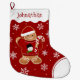 Bring cozy holiday cheer to your mantel with this adorable gingerbread man Christmas stocking! This festive design features a smiling gingerbread cookie wearing a red puffy sweater with a snowman design, a Santa hat, and holding a candy cane. Set on a classic red background with delicate white snowflakes, this stocking captures the warmth and sweetness of Christmas. Perfect for holiday décor, family stockings, or as a personalized gift for kids and cookie lovers.