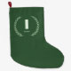 This elegant green Christmas stocking features a classic letter I monogram framed by a laurel wreath and personalized with any name. A timeless holiday keepsake, perfect for mantel décor, gift giving, or creating a coordinated family stocking set. Customize the name and make Christmas morning feel extra special.
