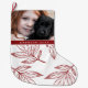 Meia De Natal Grande Impressão botânico com foto e nome Red Holiday