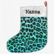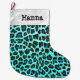 Meia De Natal Grande Leopardo Negro e Teal