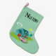 Este teste padrão suburbano retro customizável da meia do Natal da casa caracteriza uma casa americana típica em uma vizinhança americana típica, cerca de 1950. Uma casa da cerceta com um telhado do azul de pavão, e as janelas de turquesa são deslocadas perfeitamente por uma porta vermelha vibrante da porta da rua e da garagem. Um rosa clássico, carro convertível finned dos anos 50 é estacionado na entrada de automóveis pitoresca. Os flamingos Kitschy, plásticos, cor-de-rosa olham direitos em casa na forma do Bumerangue da grama verde recentemente segada que descansa em um fundo do jade. O gramado manicured é ajardinado com árvores lunáticas. O feijão-roxo deu forma a nuvens e um sunburst amarelo de um sol deixou-o sabê-lo é apenas um outro dia glorioso no subúrbio moderno do meio século. Personalize com um nome.