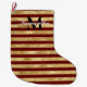 Meia De Natal Grande Monograma Dourado de Stripes Vermelhas