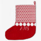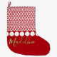 Decore seu envoltório com esta meia personalizada moderna do Natal. A parte superior da meia caracteriza um teste padrão retro do floco de neve amarrado com ornamento do círculo. Apenas abaixo do esse está um espaço para seu nome em um roteiro verde e branco. A parte traseira tem o mesmo teste padrão do floco de neve e dos ornamento, e tem um espaço por o ano no branco. Clique personalizam para mudar as pias batismais, para resize ou reposicionar o texto ou os gráficos - edite-o contudo que você gosta. Feliz Natal!