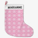 Escolha bonito com esta estocagem de Natal, com um design branco e rosa giro. A frente da estocagem é rosa-bebê com flocos de neve brancos, enquanto a face reversa é branca com flocos de neve cor-de-rosa pastel. Personalize o estoque com um nome no topo, em uma fonte retrô na moda, para um toque de acabamento individual.