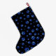 Meia De Natal Grande Padrão de pata de cão brilhante azul Monograma