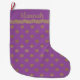 Um rico fundo roxo real e círculos reluzentes criam uma estocagem de natal entre raparigas. Os fãs roxos adoram este. Seu nome está escrito na mesma cor dourada no topo da estocagem. Dourado detalhe o separa do padrão dourado... Design está em dois lados.