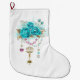 Meia De Natal Grande Rosas Turquesas com Chaves