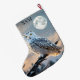 Meia De Natal Grande Snowy Owen em Lua de inverno com neve caindo
