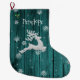 Meia De Natal Grande Teal Rustic Christmas Reindeer Stocks