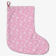 Meia De Natal Grande White Snowflakes on Light Pink Winter Pattern