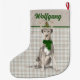 Meia De Natal Grande Wolfhound irlandês Holiday e Xadrez com nome de cã