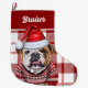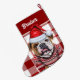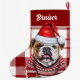 Esta estocagem personalizada de Natal apresenta uma ilustração encantadora de um Bulldog vestindo um suéter vermelho festivo e um chapéu de Papai Noel. O estoque é enfeitado com um padrão de xadrez branco e vermelho, adicionando um toque tradicional ao design. O nome do seu cachorro é exibido com destaque em uma fonte de na moda, fazer-o como um presente perfeito para qualquer amante de cachorro. Essa estocagem certamente trará alegria para a época de férias e fará um presente único e ponderado.