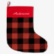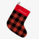 Meia De Natal Grande Xadrez de Buffalo Vermelho com Nome