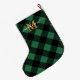 Meia De Natal Grande Xadrez verde feriado com Monograma e Nome