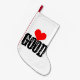 A palavra Bom e um coração vermelho acima da palavra. Camisas engraçadas, presentes, impressões, lembranças por diversão e bom humor.