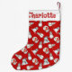Que resiste a essa linda estocada de natal vermelho com seu nome de filha em fonte decorativa. Apresentando um adorável bonitinho de neve na frente e um padrão de homens de neve nas costas. Para alterar o texto ou o gráfico do boneco de neve, clique no botão personalizar. Este design contém IA.