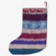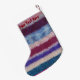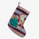 Este tradicional estoque de natal em estilo de chique tem uma foto de Papai Noel com seu saco cheio de presentes todos envolvidos e prontos para o parto do dia de Natal, você pode ver um ursinho amarelo com um arco vermelho e um coelho azul apenas saindo do topo do saco verde. Pai Natal está segurando um estoque de natal vermelho colorido e listrado de ouro que tem um bastão doce e presentes menores, ele também está segurando um pequeno presente embrulhado em sua mão A ilustração fofa está em um fundo riscado colorido original para dar a ele uma aparência de chique. A imagem original dos papais noeis é uma pintura a cores da água que eu criei alguns anos atrás. A imagem festiva colorida e tradicional parece excelente nesta meia gira. O fundo tricotado é uma fotografia do meu próprio cobertor de retalhos que foi feito usando tecidos retrorreflectores. Eu acho que esta estocagem de natal original será perfeita para o incêndio de Natal. Este é um estoque personalizável, você pode personalizá-lo com seu próprio texto.