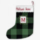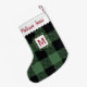 Meia De Natal Pequena Búfalo Verde Cheque Evergreen Wreath Monograma