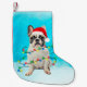 Meia De Natal Pequena Buldogue Francês nas Luzes de Natal em Neve