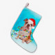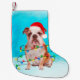 Meia De Natal Pequena Buldogue Sentado em Neve com Luzes de Natal