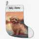 Cachorro Cockapoo sentado ao lado de um lago ao pôr do sol. Adicione esta imagem a outros produtos. Adicione seu próprio texto também. Muitos animais de estimação nas minhas lojas.