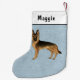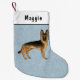 Meia De Natal Pequena Cachorro German shepherd Preto E Tano Em Pé Azul