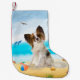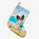 Meia De Natal Pequena Cão Papillon na Praia