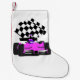 Meia De Natal Pequena Carro Race Rosa Girly com Bandeira Verificada