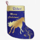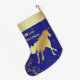 Meia De Natal Pequena Cavalo Dourado ocidental no fundo azul