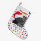 O papai noel bonito, feito sob encomenda chapéu, a foto do cão e o nome do cão personalizado da meia do Natal do nome de animal de estimação são indicados em uma bandeira branca com as bagas do azevinho na rotulação moderna, vermelha na parte superior. Debaixo de um quadrado preto simples, fino molda a foto do seu cão que veste um chapéu de Papai Noel. Mova o chapéu ou faça-o maior ou menor para caber usando a opção da personalização. Teste padrão bonito, brilhante do impressão da pata no fundo branco. Decoração brilhante, festiva do feriado do Natal para amantes do cão. Presente bonito, personalizado do Natal para seu bebê da pele ou para proprietários do cão. Encontre meias mais personalizadas do Natal da foto do cão do feriado em nossa loja de Zazzle.com/angela65. A mistura e o fósforo e escolhem uma meia bonito do feriado para cada membro da família, incluindo seus animais de estimação amados.