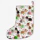 Cães de Collie Cute Rough vestidos em roupas festivas, chapéus de Papai Noel e blusas de argila com Enfeites de natal espalhados.
