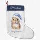 Papais noeis de Natal personalizados Bunny Stocking, perfeitos para seus pequenos nesta temporada de festas. Essa estocagem adorável apresenta um belo coelhinho vestindo um chapéu de Papai noel azul coberto de neve. A reserva pode ser personalizada com o nome do seu filho. Segure-o na sua manta ou no quarto do seu filho para adicionar um toque festivo à sua casa.