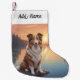 Collie dog sitting by a lake at sunset. Add this image to other products. Add your own text too. Lots of pets in my stores.