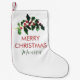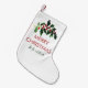 Red and green, botanical, red berries, holly, elegant Christmas stocking. Personalize it with your name.