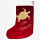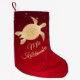 Esta estocada de Natal havaiana moderna apresenta uma tartaruga tribal de ouro e uma saudação "Mele Kalikimaka" numa escrita elegante.