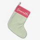 Meia De Natal Pequena Escuro de Caligrafia Branca, Cor-de-Rosa