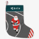 Criativo correndo trilha e estocagem de Natal no campo com Papais noeis correndo. Editar texto para adicionar nome.