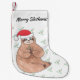 Esta meia de Natal giro é decorada com uma aquarela sorrindo preguiça e festiva e diz Feliz Slothmas. Facilmente personalizável. Você não encontrará essas imagens exatas de outros designers enquanto criamos nossa trabalho de arte. Original Watercolor © Michele Davies.