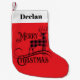Meias de Natal personalizadas com um escândalo escandinavo desejando um Feliz Natal. Fabulosa decoração para o feriado. Não se esqueça de personalizá-lo com um nome.