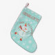 Esta meia de Natal personalizada apresenta um bonitinho bonitinho de neve e design de flocos de neve. Personalize-o com um nome.