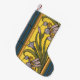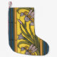 Meia De Natal Pequena Flor de Íris Art Nouveau Vitral Azul Dourado