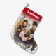 Transforme uma foto favorita em um estoque especial personalizado de Natal. Esse estoque de fotos está pronto para ser personalizado com um nome em letras brancas em negrito contra uma camada vermelha festiva no topo do estoque.