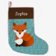 Um adorável design de raposa com um fundo de cromo teal constitui esta linda estocagem de Natal personalizada. Design original por Night Owl's Menagerie, 2017.