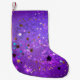 Meia De Natal Pequena Fundo de folhas roxas com estrelas